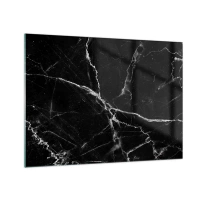 Tablou pe sticlă - Suprafață de marmură neagră cu vene ușoare - 70x50cm - Viața secretă a unei pietre - Decorațiune modernă pentru perete pentru living și dormitor ARTTOR