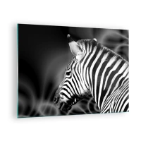 Tablou pe sticlă - Zebră în estetică alb-negru - 70x50cm - Albul e alb și negrul e negru - Decorațiune modernă pentru perete pentru living și dormitor ARTTOR