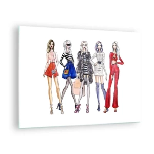 Tablou pe sticlă - Personaje la modă în ținute elegante în ilustrație - 70x50cm - Every week Fashion Week - Decorațiune modernă pentru perete pentru living și dormitor ARTTOR
