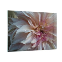 Tablou pe sticlă - Prim-plan al unei flori roz și crem cu picături de apă - 70x50cm - Prospețime înfloritoare - Decorațiune modernă pentru perete pentru living și dormitor ARTTOR