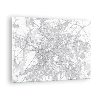 Tablou pe sticlă - Hartă alb-negru a Berlinului cu o dispunere geometrică a străzilor - 70x50cm - Floare de Berlin - Decorațiune modernă pentru perete pentru living și dormitor ARTTOR