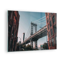 Tablou pe sticlă - Un pod suspendat între clădiri din cărămidă într-un cadru urban - 70x50cm - În valurile orașului - Decorațiune modernă pentru perete pentru living și dormitor ARTTOR