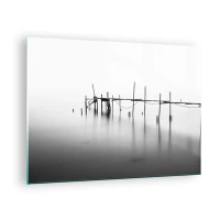 Tablou pe sticlă - Un debarcader alb-negru pe o suprafață calmă a apei - 70x50cm - Și dacă lumea nu ar exista? - Decorațiune modernă pentru perete pentru living și dormitor ARTTOR