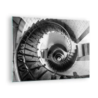 Tablou pe sticlă - Fotografie alb-negru a unei scări în spirală în perspectivă - 70x50cm - Din ce în ce mai sus - Decorațiune modernă pentru perete pentru living și dormitor ARTTOR