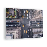 Tablou pe sticlă - Vedere aeriană a unei intersecții aglomerate din oraș - 70x50cm - O alegere simplă - Decorațiune modernă pentru perete pentru living și dormitor ARTTOR