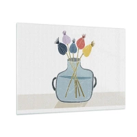 Tablou pe sticlă - Capete decorative de mac într-un ulcior în stil grafic - 70x50cm - Paparune sau maci? - Decorațiune modernă pentru perete pentru living și dormitor ARTTOR