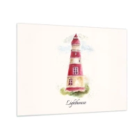 Tablou pe sticlă - Far în acuarelă cu inscripția Far - 70x50cm - Întotdeauna vreme bună - Decorațiune modernă pentru perete pentru living și dormitor ARTTOR