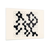 Tablou pe sticlă - Un mozaic grafic alb-negru compus din puncte conectate. - 70x50cm - Joc chinezesc - o variație - Decorațiune modernă pentru perete pentru living și dormitor ARTTOR