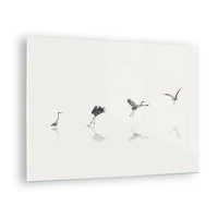 Tablou pe sticlă - Siluete a patru păsări mișcându-se peste apă - 70x50cm - Patru pași simpli - Decorațiune modernă pentru perete pentru living și dormitor ARTTOR