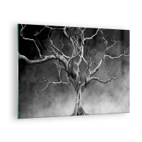 Tablou pe sticlă - Copac negru pe fundalul ceții - 70x50cm - Primare și sacre - Decorațiune modernă pentru perete pentru living și dormitor ARTTOR
