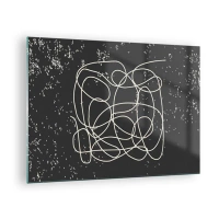 Tablou pe sticlă - Linie abstractă sub formă de încurcătură pe un fundal negru texturat - 70x50cm - Gânduri rătăcitoare - Decorațiune modernă pentru perete pentru living și dormitor ARTTOR