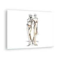 Tablou pe sticlă - Schiță artistică a două femei într-un stil minimalist. - 70x50cm - Un studiu de farmec - Decorațiune modernă pentru perete pentru living și dormitor ARTTOR