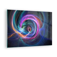 Tablou pe sticlă - O spirală abstractă în culori intense pe un fundal întunecat. - 70x50cm - Unde mă vei duce? - Decorațiune modernă pentru perete pentru living și dormitor ARTTOR