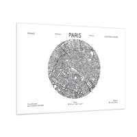 Tablou pe sticlă - O hartă circulară a Parisului în ilustrație alb-negru - 70x50cm - Anatomia Parisului - Decorațiune modernă pentru perete pentru living și dormitor ARTTOR