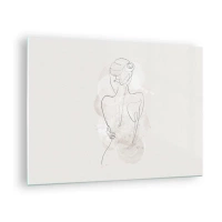 Tablou pe sticlă - O schiță delicată a unei femei pe un fundal deschis - 70x50cm - Ca un instrument sensibil - Decorațiune modernă pentru perete pentru living și dormitor ARTTOR