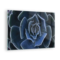 Tablou pe sticlă - Fotografie macro a unei suculente în nuanțe de albastru rece - 70x50cm - Floare de deșert - Decorațiune modernă pentru perete pentru living și dormitor ARTTOR