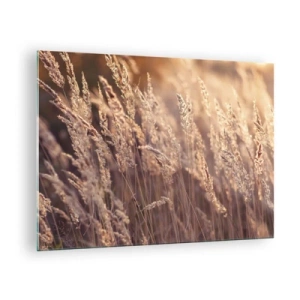 Tablou pe sticlă - Ierburi aurii iluminate de razele soarelui care apune - 70x50cm - Gata să întâmpine toamna - Decorațiune modernă pentru perete pentru living și dormitor ARTTOR