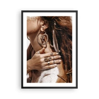 Poster în ramă neagră - Detaliu de bijuterii pe fundal de piele nisipoasă - 50x70cm - Regina plajei sălbatice - Decorațiune modernă pentru perete pentru living și dormitor ARTTOR
