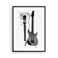 Poster în ramă neagră - Chitare electrice moderne pe fundal alb - 50x70cm - Armonie de forme - Decorațiune modernă pentru perete pentru living și dormitor ARTTOR