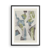 Poster în ramă neagră - Figuri abstracte în nuanțe de verde și albastru - 50x70cm - Compoziție din spatele geamului - Decorațiune modernă pentru perete pentru living și dormitor ARTTOR
