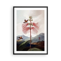 Poster în ramă neagră - Floare exotică cu colibri printre munți - 50x70cm - Într-un paradis tropical - Decorațiune modernă pentru perete pentru living și dormitor ARTTOR