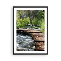 Poster în ramă neagră - Un pod de lemn peste un pârâu repetat - 50x70cm - Cascadă spumoasă - Decorațiune modernă pentru perete pentru living și dormitor ARTTOR