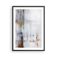Poster în ramă neagră - O compoziție abstractă cu nuanțe de gri, alb și auriu. - 50x70cm - În spatele cortinei de aer - Decorațiune modernă pentru perete pentru living și dormitor ARTTOR
