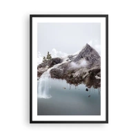 Poster în ramă neagră - Peisaj montan cu cascadă și nori - 50x70cm - Prin ochii unui suprarealist - Decorațiune modernă pentru perete pentru living și dormitor ARTTOR