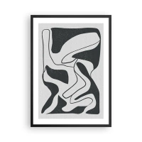 Poster în ramă neagră - Abstracție alb-negru cu forme organice - 50x70cm - Distracție abstractă în labirint - Decorațiune modernă pentru perete pentru living și dormitor ARTTOR