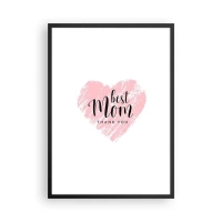 Poster în ramă neagră - Inimă roz cu text pe fundal alb, în stil minimalist - 50x70cm - Întotdeauna la momentul potrivit - Decorațiune modernă pentru perete pentru living și dormitor ARTTOR