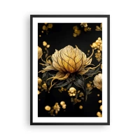 Poster în ramă neagră - O floare aurie pe fundal negru într-o compoziție elegantă - 50x70cm - Fragilitate subtilă - Decorațiune modernă pentru perete pentru living și dormitor ARTTOR