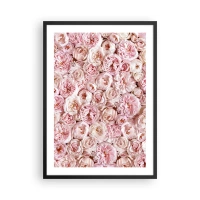 Poster în ramă neagră - Un aranjament romantic de flori roz în prim-plan - 50x70cm - Presărat cu trandafiri - Decorațiune modernă pentru perete pentru living și dormitor ARTTOR
