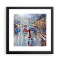 Poster în ramă neagră - O după-amiază ploioasă în oraș - 30x30 cm