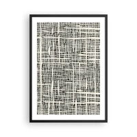 Poster în ramă neagră - Model geometric negru pe fundal deschis - 50x70cm - O compoziție țesută - Decorațiune modernă pentru perete pentru living și dormitor ARTTOR