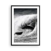 Poster în ramă neagră - Un val puternic în nuanțe de gri - 50x70cm - Mânia oceanului - Decorațiune modernă pentru perete pentru living și dormitor ARTTOR