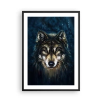 Poster în ramă neagră - Portretul unui lup într-un ton artistic, întunecat - 50x70cm - Alfa? Și omega - Decorațiune modernă pentru perete pentru living și dormitor ARTTOR