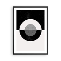 Poster în ramă neagră - Model geometric în alb și negru cu un cerc concentric - 50x70cm - Armonie în alb și negru - Decorațiune modernă pentru perete pentru living și dormitor ARTTOR