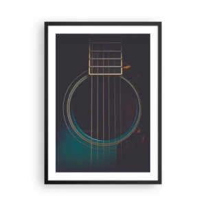 Poster în ramă neagră - Un prim-plan artistic al plăcii de rezonanță a unei chitare acustice. - 50x70cm - O clipă înainte de a suna - Decorațiune modernă pentru perete pentru living și dormitor ARTTOR