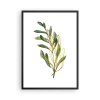 Poster în ramă neagră - Frunze verzi și accente aurii pe un fundal închis - 50x70cm - Grădina fermecată - Decorațiune modernă pentru perete pentru living și dormitor ARTTOR