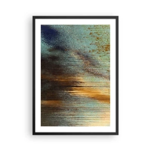 Poster în ramă neagră - O compoziție abstractă în nuanțe de albastru, alb și auriu. - 50x70cm - Dansul elementelor - Decorațiune modernă pentru perete pentru living și dormitor ARTTOR