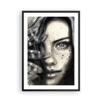 Poster în ramă neagră - Portretul unei femei în stil monocrom - 50x70cm - Frumusețe sălbatică - Decorațiune modernă pentru perete pentru living și dormitor ARTTOR