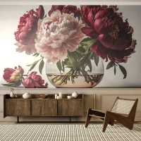 Tapet Premium Sand - În plină înflorire - Buchet de flori, Vază, Bujori - 100x70 cm