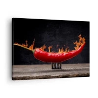 Tablou pe pânză Canvas - Ardei roșu aprins pe o furculiță - 70x50cm - O gustare înflăcărată - Decorațiune modernă pentru perete pentru living și dormitor ARTTOR