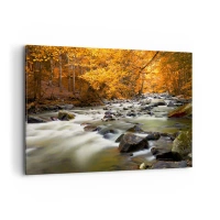 Tablou pe pânză - Un pârâu într-o pădure de aur - 120x80 cm