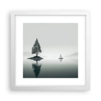 Poster în ramă neagră - Un copac singuratic pe o insulă cu o reflexie în apă - 50x70cm - Visând cu ochii deschiși - Decorațiune modernă pentru perete pentru living și dormitor ARTTOR