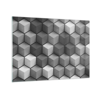 Tablou pe sticlă - Cuburi geometrice în nuanțe de gri - 70x50cm - Puzzle cubist - Decorațiune modernă pentru perete pentru living și dormitor ARTTOR
