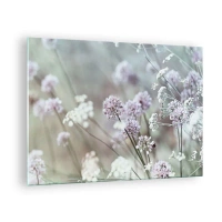 Tablou pe sticlă - Flori sălbatice delicate în nuanțe pastelate - 70x50cm - Ierburi dulci filigranate - Decorațiune modernă pentru perete pentru living și dormitor ARTTOR