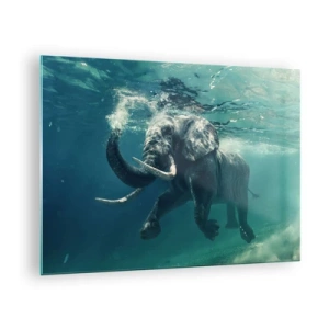 Tablou pe sticlă - Un elefant înotând sub apă în oceanul albastru - 70x50cm - Tuturor le place să înoate - Decorațiune modernă pentru perete pentru living și dormitor ARTTOR