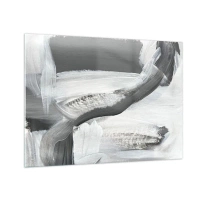 Tablou pe sticlă - Abstracție alb-negru cu tușe dinamice de pensulă. - 70x50cm - Cu o mișcare decisivă - Decorațiune modernă pentru perete pentru living și dormitor ARTTOR