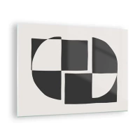 Tablou pe sticlă - Compoziție geometrică din forme alb-negru - 70x50cm - Antiteză - sinteză - Decorațiune modernă pentru perete pentru living și dormitor ARTTOR